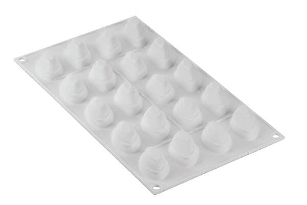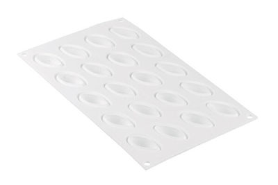 The QUENELLE 10 mould is suitable for the creation of 20 sweet or savoury perfectly 3D quenelles of 10ml volume each. The tridimensionality is made possible thanks to a special and innovative border located inside the mould which gives a particular round shape to the base of preparations. QUENELLE 10 is suitable for baked products as well as semifreddo and gelato versions.