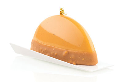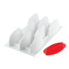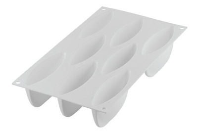 The single portion you don’t expect. Vela100, characterized by an elliptical and aerodynamical shape, is the innovative mould for single portions, perfect to be glazed providing an incredible visual effect. The mould is made of 8 cavities of 100 ml each, a plastic cutter is included to make original inserts and/or bases which perfectly match with the shape of the mould.