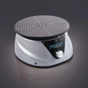 The Spinner electric cake turntable offers a compact and lightweight design, perfect for small workshops or outdoor use. Its stable body and non-slip silicone top provide precise and consistent decoration placement with the help of a 24 cm diameter Plexiglas surface and graduated scale. Easily switch between clockwise and anticlockwise rotation at adjustable speeds with the aid of the directional LEDs.